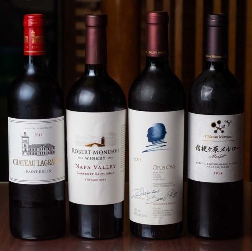 天ぷらと相性のいいワインを、職人が自らテイスティングを行い、選りすぐりの入手困難なものを、フルボディからライトボディまで揃えさせていただきました。